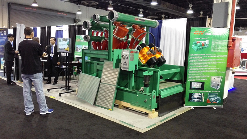 本次展會冠能固控主要展示了廢漿處理設備,日益嚴格的環保要求,對鉆井廢棄泥漿的處理的要求也越來越高,針對廢漿處理,冠能固控研發生產的鉆屑甩干機及廢棄泥漿處理離心機可以滿足客戶的處理要求,在國內外市場上得到了客戶的一致好評。