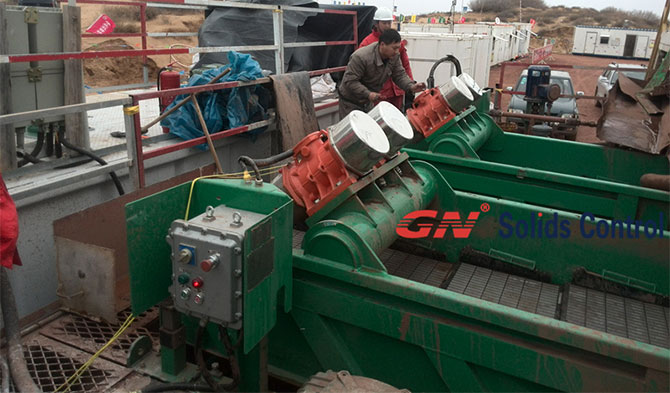 高G機振蕩器一般用于水基泥漿鉆屑處理。從振動篩排出后,廢屑將通過螺旋輸送器運送到高G機振動篩。經(jīng)過其干燥篩分后,鉆屑的含液量將至少降低10%。  2015.5.20 high G dryer shaker for SINOPEC
